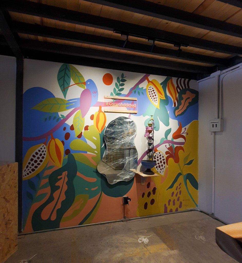 Trabajamos con la increíble artista gráfica Analí para hacer un mural, desarrollamos toda la propuesta creativa, diseño de muebles y accesorios y la ejecución se hizo en conjunto con CACAO INC.